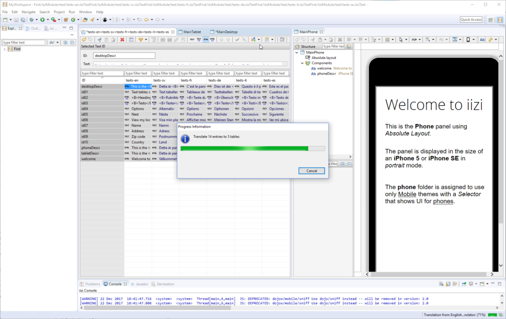 The screen capture below shows the text tables opened in parallel with the base language first.