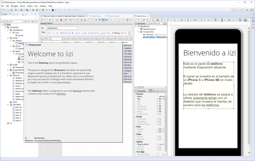 If you left the checkbox “Create a template iiziApp” on the first wizard page selected, you will be asked for the name of the template project name and what device types you wish to create the template for. You can also use multiple languages when developing if Create text tables with automatic translation is turned on.